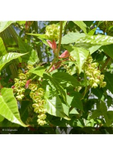 Erable du père David, 6*4 m, très belle écorce, sillons blanchâtres, feuilles vert foncé, jaune or en automne, fruits décoratifs, souffre du sec.