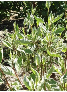3 m, feuilles panachées de blanc, bois rouge brunâtre l\'hiver, tous les sols, massif, haie.