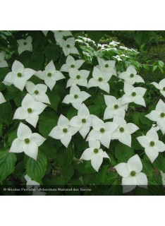 5 m x 4 m, port élégant conique, feuille ovale vert foncé, rouge vif en automne, très belle floraison blanche 5cm en juin-juillet, fructification ressemblant à une fraise, sol acide à neutre, humifère, expo mi-ombre, -15°.