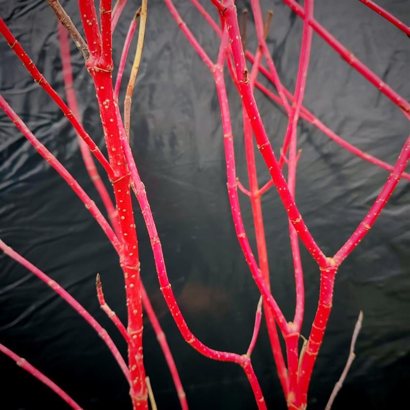 2 m, feuillage vert, lie de vin à l\'automne au revers argenté, bois rouge vif en hiver, croissance rapide, sol frais, exposition soleil, mi-ombre.