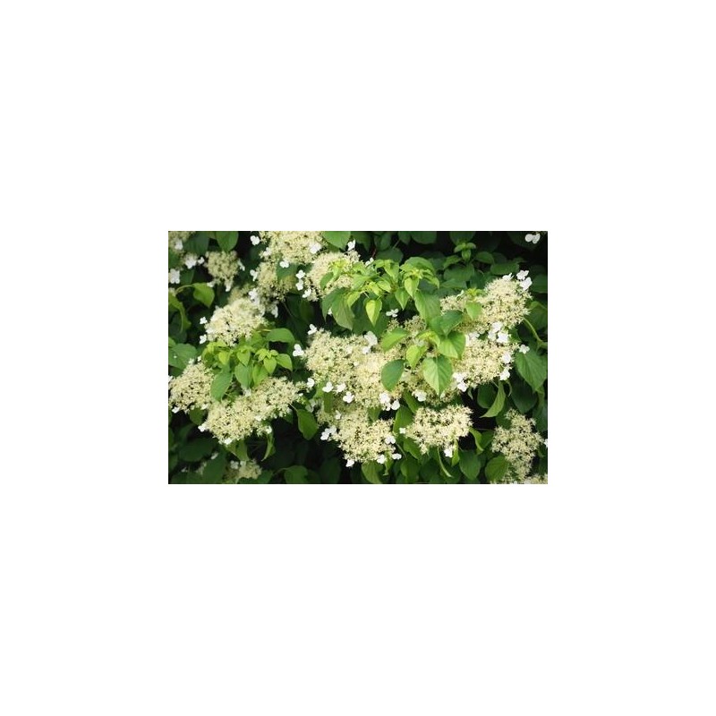 Hortensia grimpant, corymbes à fleurs en 6, tapisse les murs à l\'ombre, sol neutre.