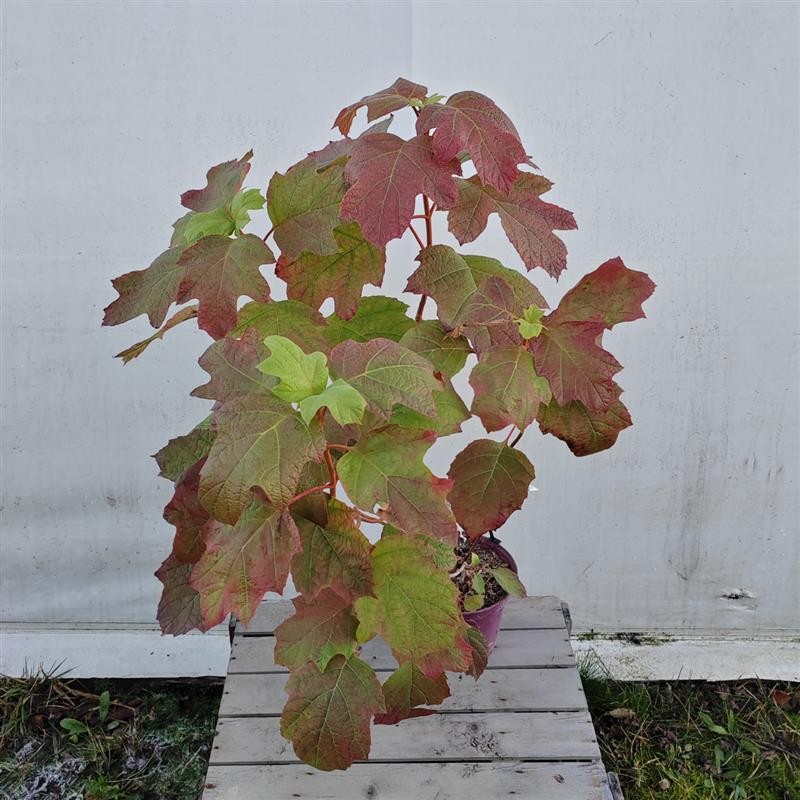Hortensia à feuille de chêne, 2 m, port très ramifiéfleur en panicule blanche de 25 cm, virant au rose à l'automne feuillage semi-persistant, expo. soleil à mi-ombre,,sol acide à neutre.
