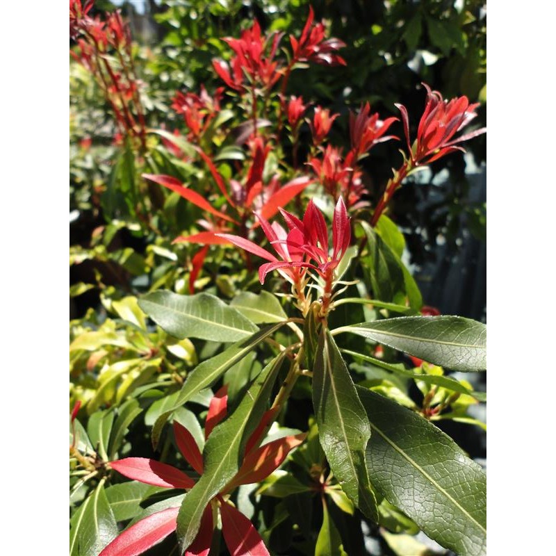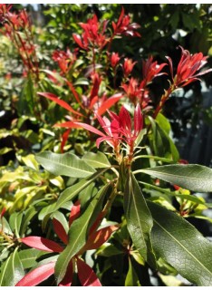 2,50 m, port arrondi, feuille obovale, vert foncé, luisante, rouge cuivré au printemps, fleur blancheen panicule de 15 cm en 4-5, sol acide, nutritif et