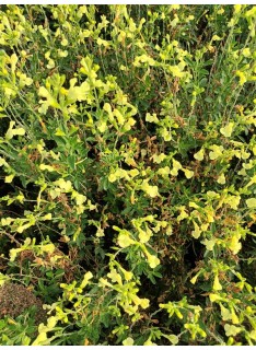 0.50 m X 0.50 m, beau feuillage vert, fleur jaune citron, sol léger, expo soleil, massif, bac.