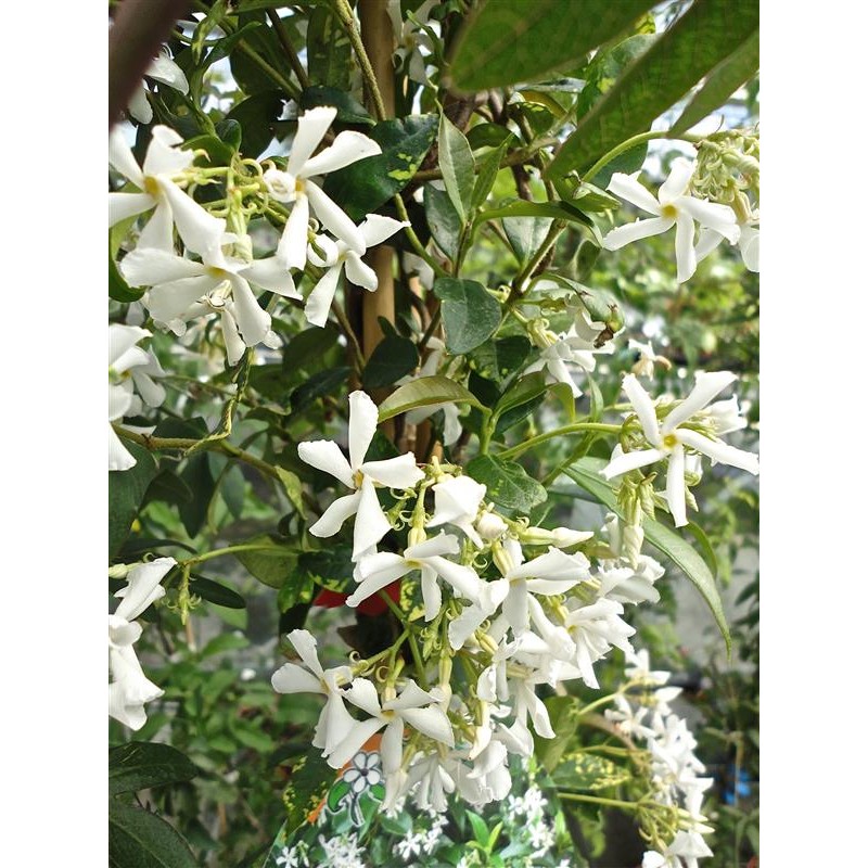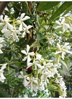 Jasmin étoilé, persistant, floraison blanche de mai à septembre, très parfumé, sol bien drainé, exposition ensoleillé.