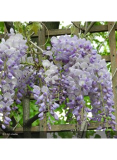 Glycine de Chine, fleur en grappe, compacte, de 15 à 30 cm, bleu violet, remontante en septembre, sol bien drainé et riche en humus, exposition soleil à mi-ombre.